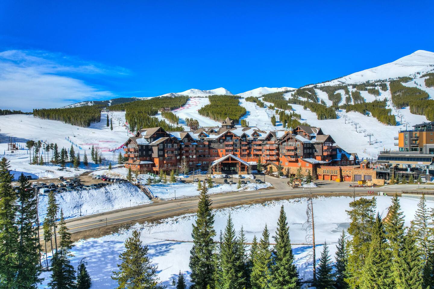 Welcome to One Ski Hill Place Resort, a prestigious enclave that sits at the base of Peak 8, one of Breckenridge's most iconic ski destinations. This upscale neighborhood is a haven for winter sports enthusiasts, offering immediate ski-in/ski-out access to some of the world's most renowned ski slopes. But the allure of this exclusive area extends beyond its powder-covered hills. Nestled amidst the stunning Rocky Mountains, the resort is a gateway to a plethora of year-round outdoor activities. From adrenaline-pumping mountain biking trails in the summer to serene snowshoeing paths in the winter, there's never a dull moment. The resort itself is a microcosm of luxury, featuring a full-service spa, heated pools, and fine dining options, ensuring that your every need is catered to. For those looking to explore Breckenridge's vibrant culture, a quick gondola ride will take you directly into the heart of downtown. Here, you'll find an array of boutique shops, art galleries, and restaurants that capture the essence of this historic mining town. Whether you're in the mood for a casual après-ski at a local brewery or a gourmet meal at a top-rated restaurant, the options are endless. In summary, One Ski Hill Place Resort offers the perfect blend of outdoor adventure and indoor luxury, making it the ultimate destination for those looking to experience the best that Breckenridge has to offer.