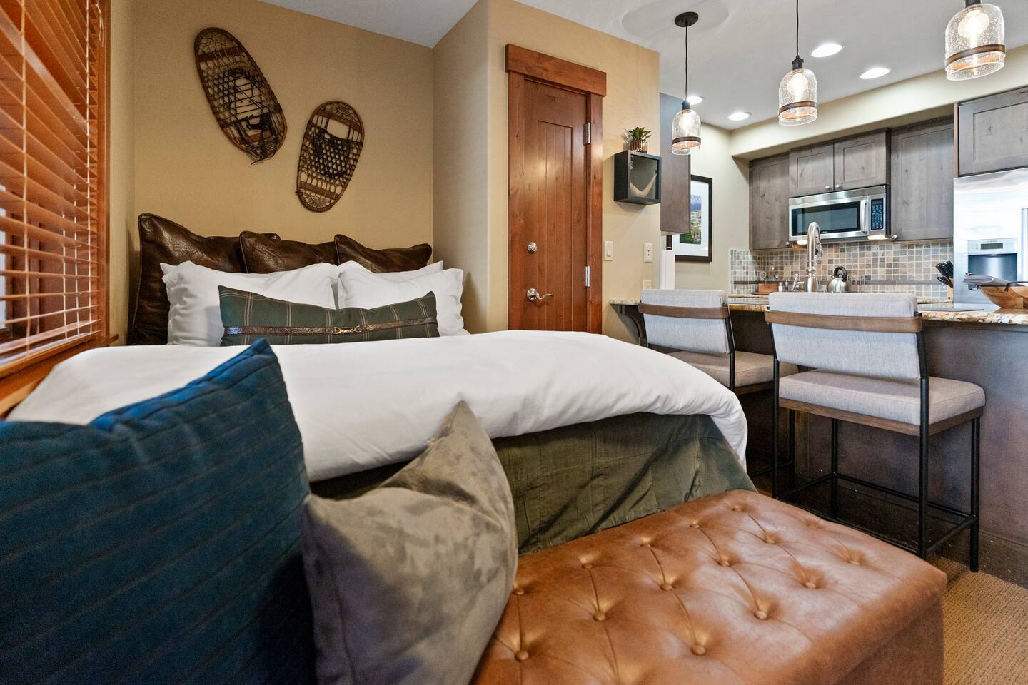 Designed for effortless alpine elegance, this studio retreat at One Ski Hill Place places you at the base of Peak 8—in the heart of Breckenridge’s most iconic ski destination. Located directly across the hall from the spa and aquatics center, the space blends tranquil privacy with five-star resort convenience. After a day on the slopes, unwind by the fireplace with a glass of wine, breathe in crisp mountain air from your private patio, or soak in the oversized tub for ultimate relaxation. The chef’s kitchen—outfitted with Bosch appliances and full cookware—makes in-home dining a delight. Elegant design touches, plush bedding, in-unit laundry, and central A/C ensure every comfort is met. Property Highlights: • True Ski-In/Ski-Out Access: Directly at the base of Peak 8 • Private Patio: Views of snow-covered alpine meadows and ski slopes • Chef’s Kitchen: Bosch appliances, cookware, and full amenities • Sleeping Arrangements: One queen bed + queen sofa bed • Gas Fireplace & Oversized Soaking Tub: Perfect après-ski relaxation • Dual Vanity Bathroom Sinks • In-Unit Washer & Dryer • Central A/C for year-round comfort • Smart TV with Roku Streaming • Keurig Coffee Machine for convenient brewing Luxury Resort Amenities: • Indoor & Outdoor Hot Tubs • Heated Indoor Pool & Fitness Center (just across the hall) • On-Site Spa & Massage Services • Private Ski Locker & Ski Valet • Bowling Alley, Billiards, and Media Room • Resort Shuttle Service to Main Street • Heated Underground Parking • Concierge Services & Curated Meal Plans available Book your Breckenridge winter getaway today and experience elevated slope-side living at One Ski Hill Place, where luxury, location, and mountain adventure come together seamlessly.