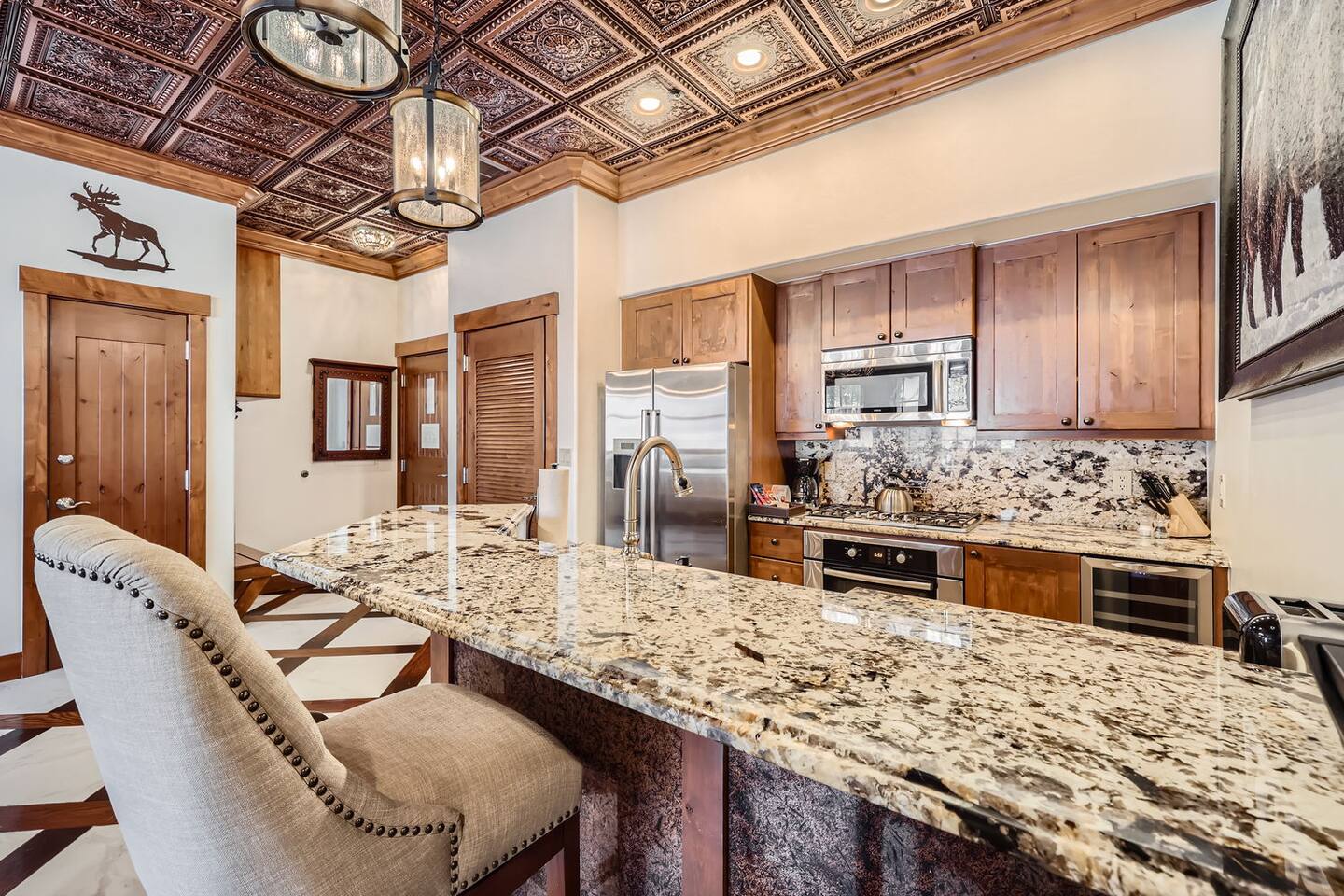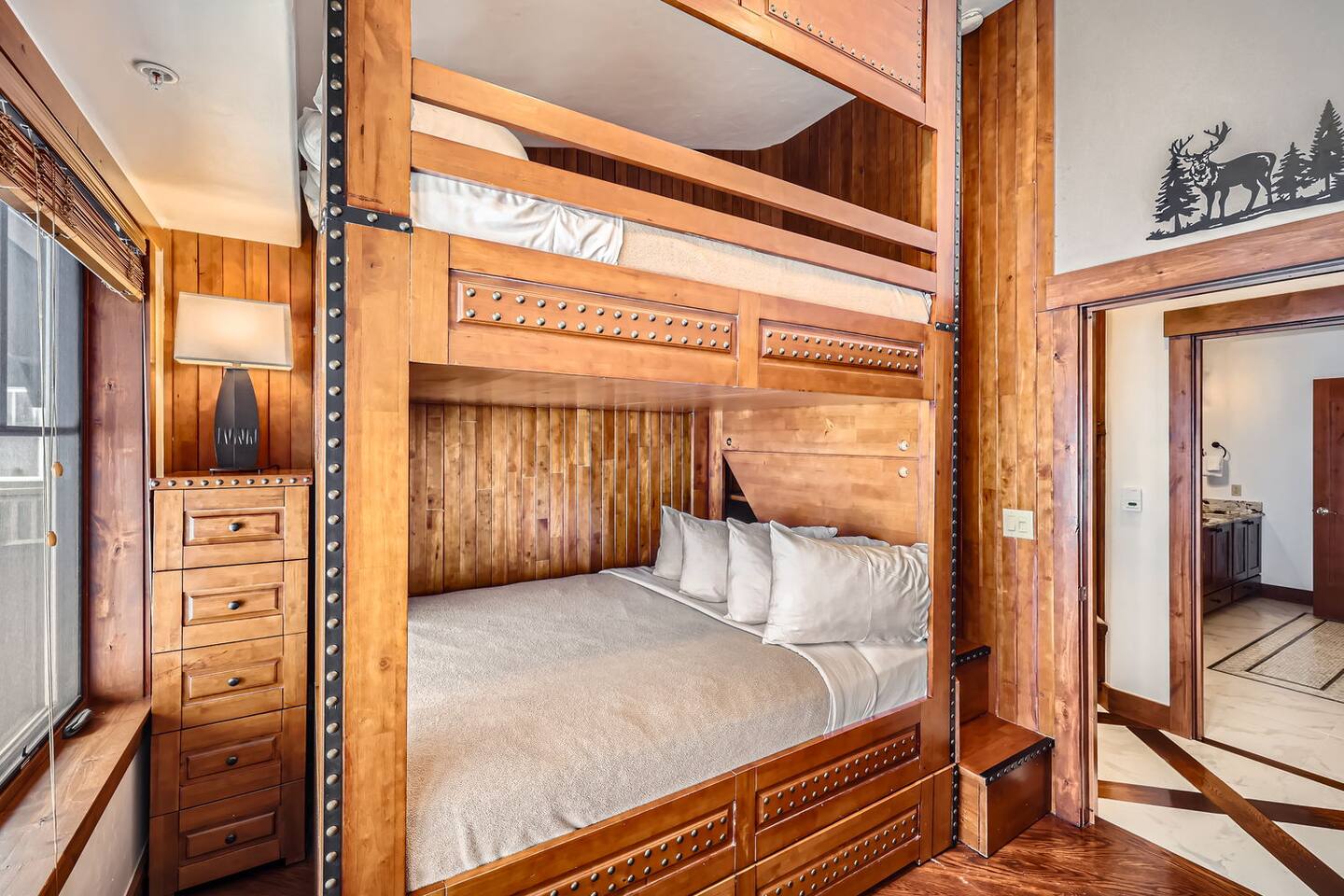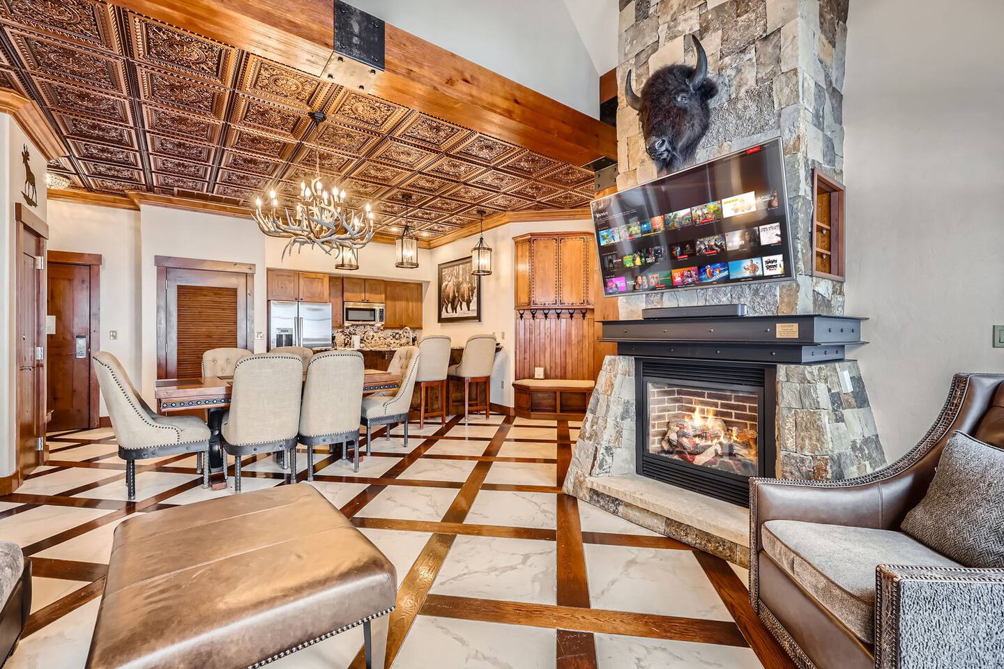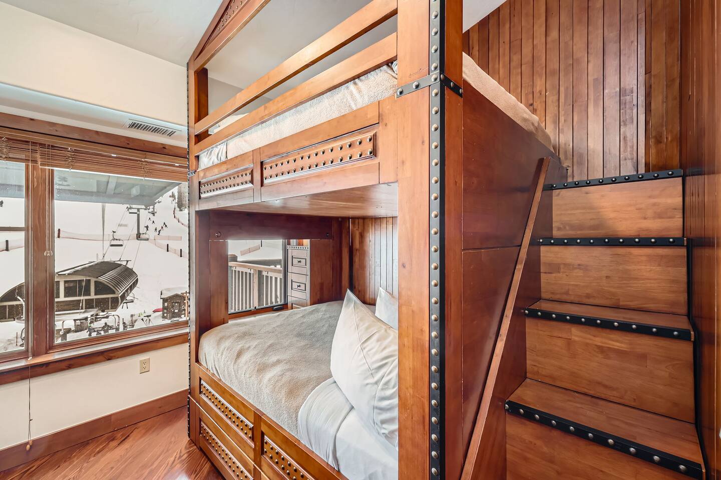 Step into an exclusive alpine sanctuary at this reimagined penthouse suite, available only through Gilson Group. Blending refined elegance with contemporary mountain luxury, the residence features soaring custom wood ceilings, exquisite marble flooring, and handcrafted copper accents throughout. Accommodating up to 8 guests, the suite includes two lavishly appointed bedrooms for the perfect balance of style and comfort: • Bedroom A: King bed with ensuite bathroom featuring a deluxe steam shower and dual copper vanity sinks • Bedroom B: Custom queen-over-queen bunk bed with an additional twin trundle, ideal for families or groups seeking upscale comfort Create unforgettable meals in the gourmet kitchen, featuring state-of-the-art Bosch appliances, elegant copper sinks, and a spacious open layout perfect for entertaining. After a day on the slopes, relax in the stylish living area beside the contemporary gas fireplace, or step out onto your private balcony to enjoy panoramic winter views of the gondola and snow-covered Peak 8. Exclusive Resort Amenities • True Ski-In/Ski-Out Access – Directly on Peak 8 for effortless slope access • 2 Reserved Heated Garage Spaces – Secure and convenient parking • Heated Outdoor Pool & Full-Service Spa • Indoor/Outdoor Hot Tubs for après-ski relaxation • Private Bowling Alley, Movie Theater & Billiards Lounge • Advanced Fitness Center, Steam Room & Dry Sauna • Gourmet On-Site Dining for breakfast through dinner • Complimentary Shuttle Service to Main Street Breckenridge • Access to Gilson Group’s Exclusive Hospitality Services – Concierge perks, curated experiences, and local partnerships Book your Breckenridge winter getaway today and experience the refined artistry, slope-side elegance, and signature hospitality that define Gilson Group’s exclusive residences at One Ski Hill Place.