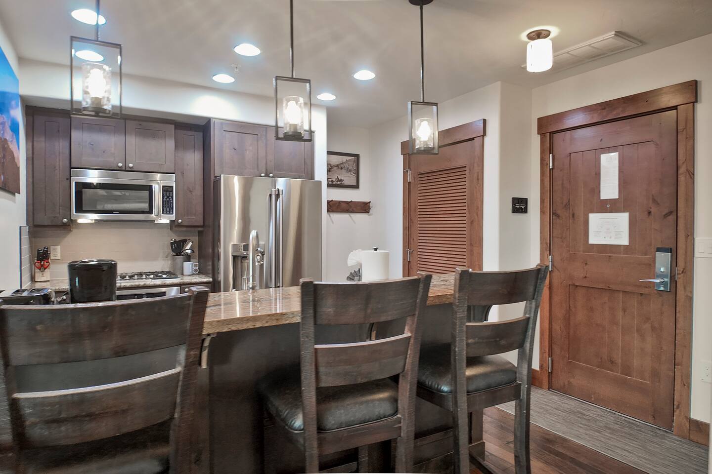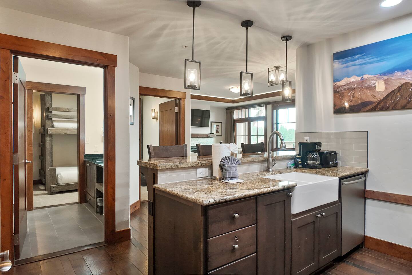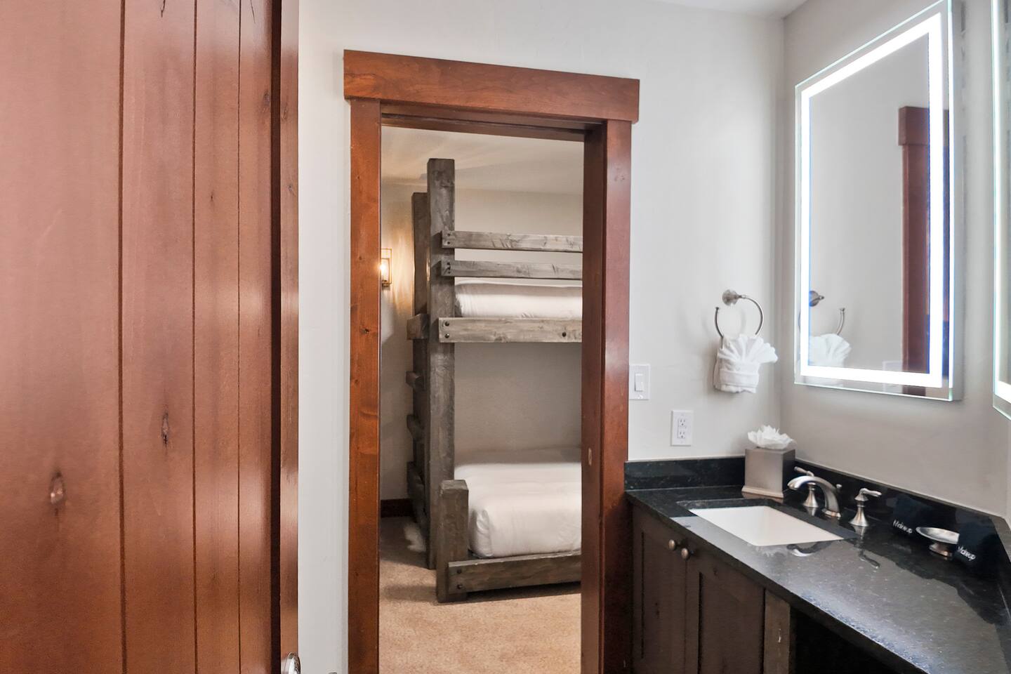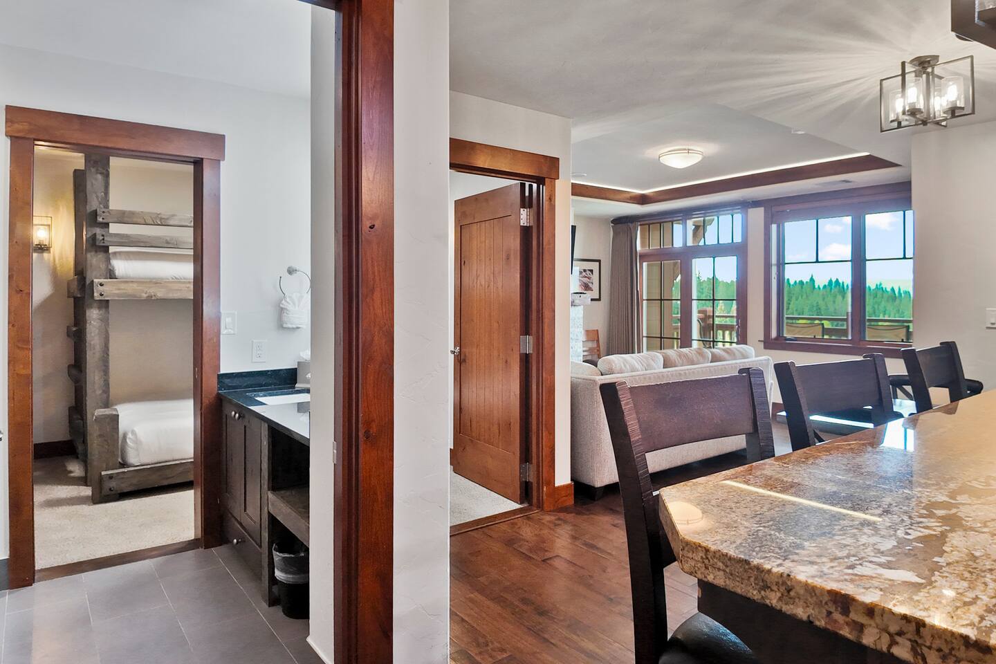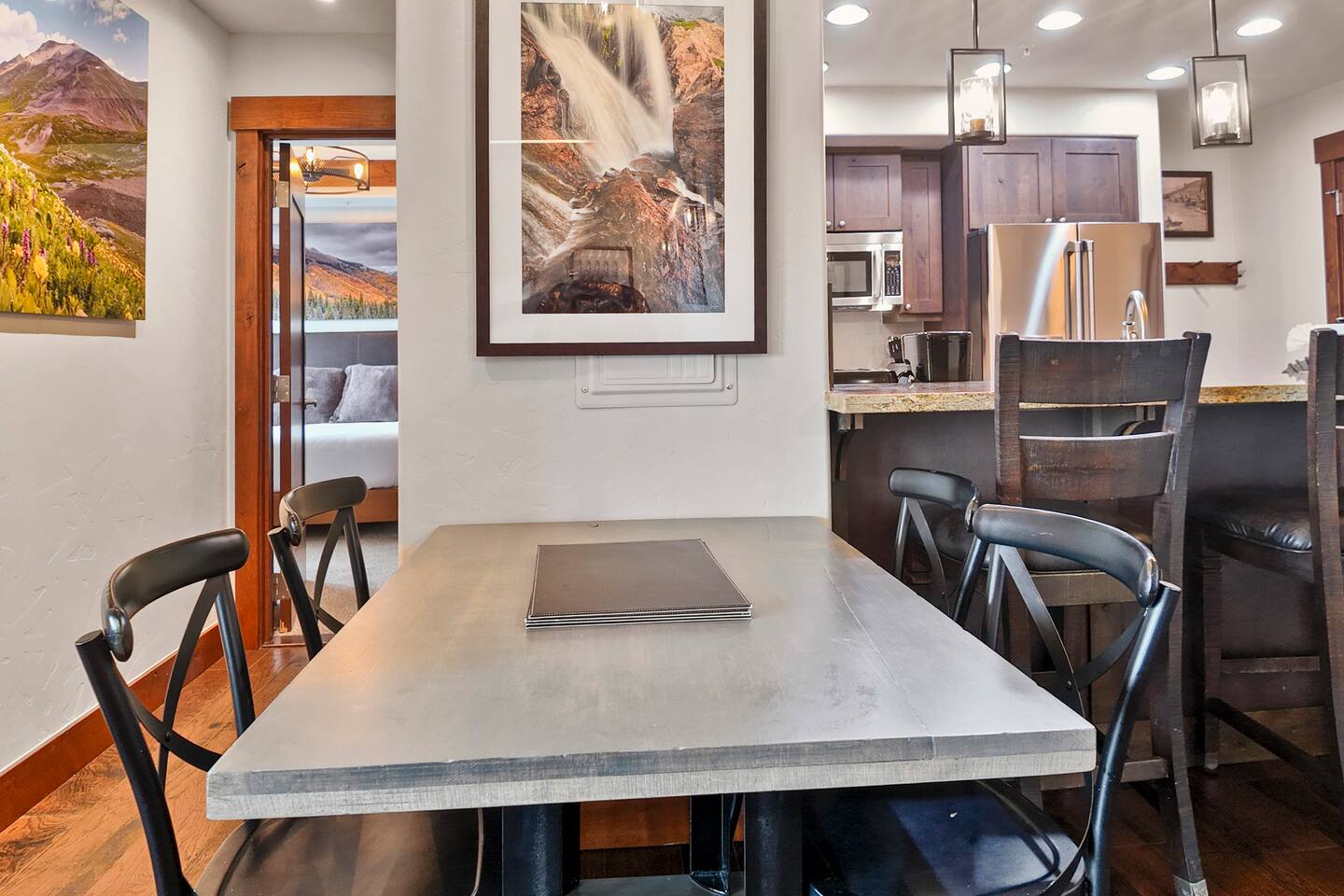 Thoughtfully designed for comfort, warmth, and effortless living, this two-bedroom, two-bathroom condo accommodates up to six guests and blends modern elegance with mountain-inspired charm. • Primary King Suite – Ensuite bathroom, plush bedding, and Smart TV • Bunk Bedroom – Twin-over-queen bunk, ensuite bath; ideal for families or groups • Gourmet Kitchen – Outfitted with premium Bosch and Café appliances, perfect for après-ski meals • Living Room – Cozy gas fireplace, Smart TV, and floor-to-ceiling windows framing snow-covered mountain views • Dining Area – Gather for meals, après-ski drinks, or game nights around the table and breakfast bar • Private Balcony – Breathe in the crisp alpine air and take in the resort’s vibrant winter atmosphere The layout offers the best of both worlds—open-concept spaces for gathering and private suites for retreat, creating a harmonious balance between social connection and relaxation. Property Highlights: • True Ski-In/Ski-Out: Step directly onto the slopes at Peak 8 • Ensuite Bathrooms: Both bedrooms include full baths for privacy • Resort Amenities: Heated pools, spa, hot tubs, steam room, sauna, fitness center, movie theater, bowling alley, and billiards lounge • On-Site Dining: Access to restaurants, après-ski lounges, and coffee shops • Concierge Services: Grocery delivery, private chefs, gear rentals, and curated activities available • Downtown Access: Complimentary shuttle to Breckenridge Main Street in just five minutes Book your Breckenridge winter escape today and experience the unmatched elegance, comfort, and ski-in convenience of One Ski Hill Place—where luxury meets adventure on Peak 8.
